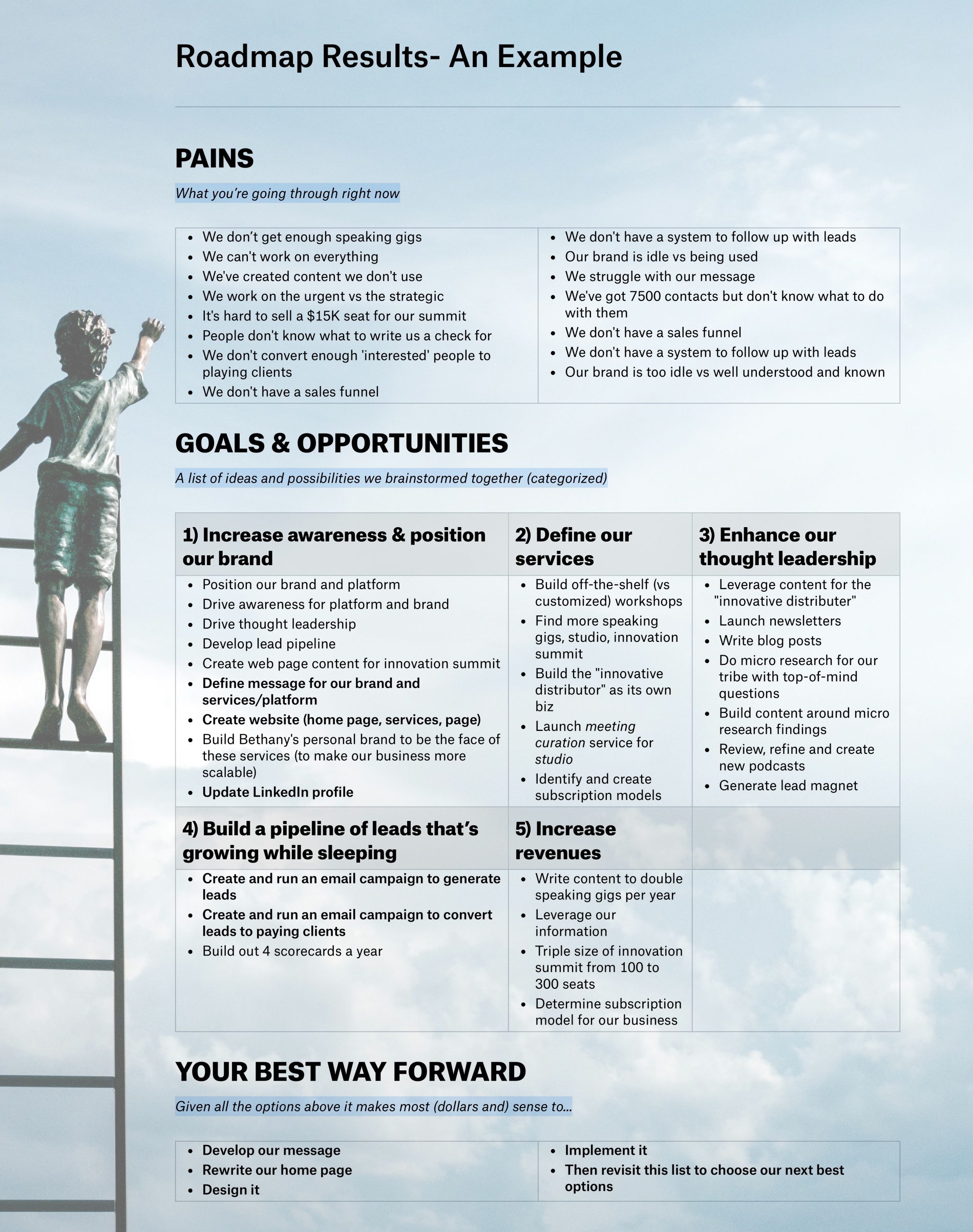 Go from uneasy and confused to clear and confident with a plan for your next digital marketing activities. You’ll be glad you spent $$$ now to earn $$$,$$$ later.